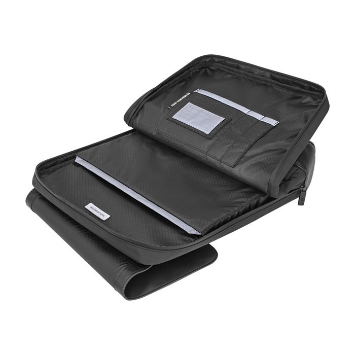 De “Metro Slim”-rugzak heeft een eigentijds design en is tegelijk heel functioneel. Deze rugzak heeft een magneetsluiting, één compartiment met waterbestendige rits, verstelbare gewatteerde schouderbanden, een ademende mesh-rug voor extra comfort en frisheid, een veilige voorvak en een bagageriem voor langere reizen. Binnenin heeft hij ook meerdere vakken. Een vak voor notities om ideeën te bewaren, 1 veilig vak met rits en 1 organizer met 2 penhouders en 1 kaarthouder. Je kunt er ook veilig een elektronisch apparaat tot 15" in opbergen.