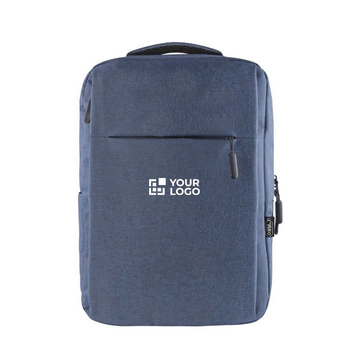 Zoek je een budgetvriendelijke rugzak voor je werknemers die hen tegelijkertijd ambassadeurs van je merk maakt? Kies dan voor deze slimme RPET polyester rugzak. Hij is ideaal voor korte zakenreizen, heeft een gewatteerde binnen- en achterkant en een vak voor laptops tot 15 inch. Handige extra's zijn de trolleyriem en twee voorvakken. Kies een van de beschikbare formele kleuren en laat de rugzak bedrukken of met je logo borduren op de voorkant voor een professionele uitstraling.