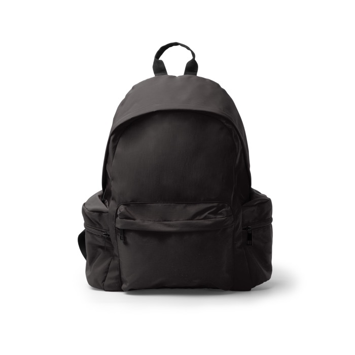 Rugzak van gerecycled 420D-nylon met een ontwerp voor je dagelijkse werk. Hij heeft een hoofdvak met een binnenvak voor een laptop tot 15'' en houdt documenten en accessoires netjes geordend. Er zijn twee dubbele zijvakken met opening aan de bovenkant en ritssluiting, plus een voorvak met rits zodat je het belangrijkste bij de hand hebt. De gewatteerde achterkant en schouderbanden zorgen voor meer comfort tijdens reizen en bezoeken. Handig als zakelijk geschenk voor beurzen, onboarding of merkacties.