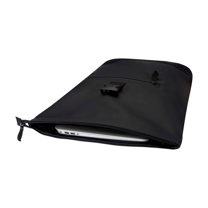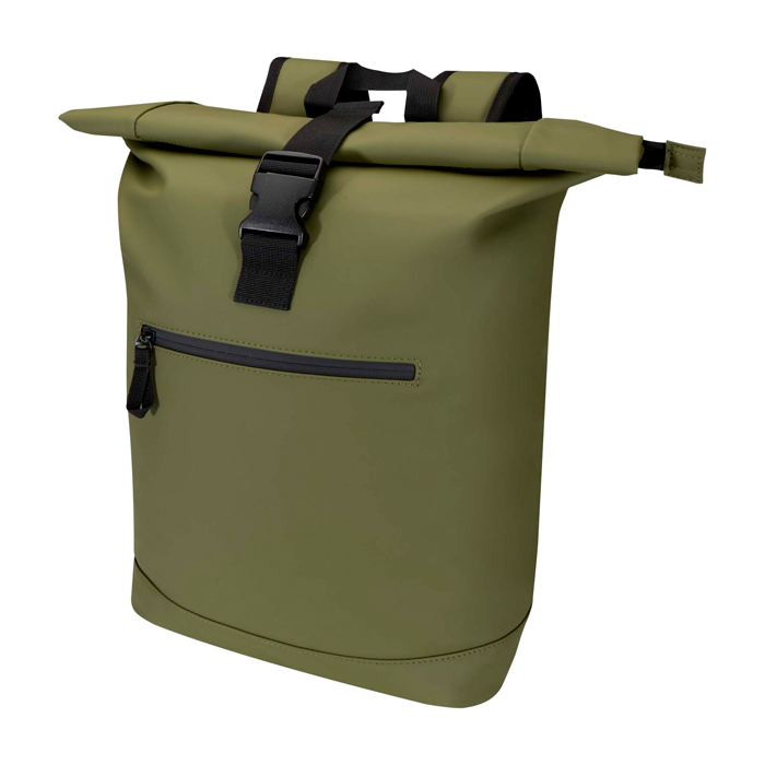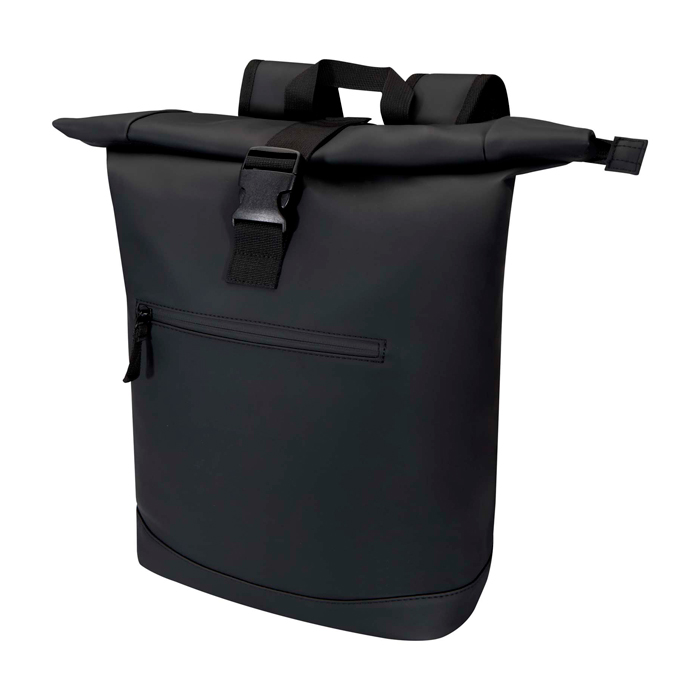 Deze rolltop rugzak is gemaakt van hoogwaardig gerecycled PU-leer met een bijpassende RPET-voering en combineert een moderne stijl met duurzaamheid. De waterbestendige afwerking houdt je spullen beschermd, terwijl de rolsluiting flexibele opslag biedt, perfect voor woon-werkverkeer, reizen of de sportschool. Binnenin bevindt zich een gevoerd vak voor laptops tot 15,6 inch, met een extra ritsvak om je technologie en dagelijkse benodigdheden georganiseerd op te bergen. Aan de buitenkant biedt een voorvak met waterdichte ritssluiting veilige toegang, terwijl gewatteerde, verstelbare schouderbanden en een ademend rugpaneel de hele dag comfort bieden.