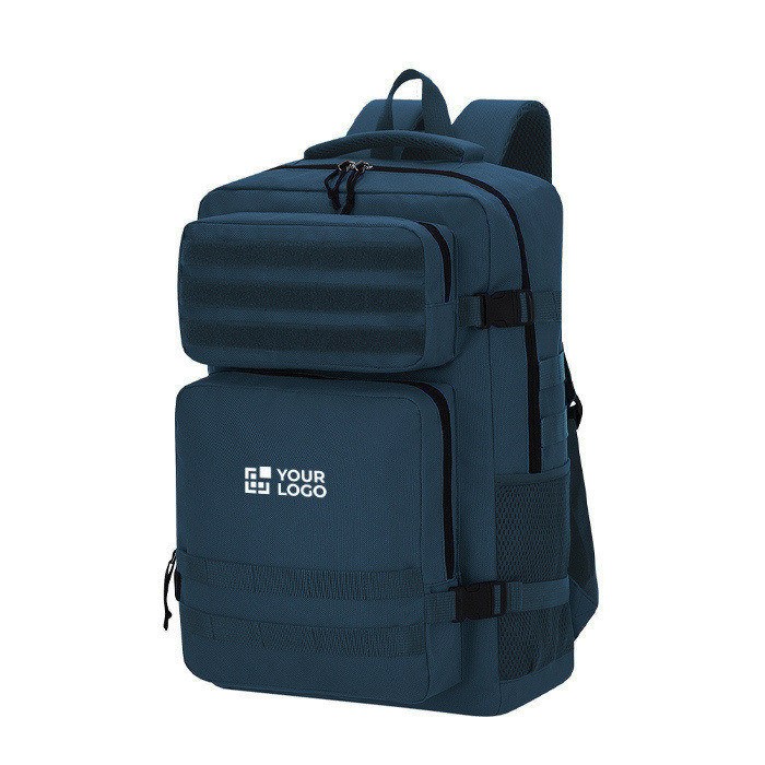 Stevige 600D polyester rugzak met een ontwerp voor elke dag en voor onderweg. Aan de voorkant zitten meerdere vakken om accessoires te organiseren, plus elastische houders en klittenband zodat je spullen bij de hand hebt. Hoofdvak met dubbele ritssluiting en ruimte voor een 17'' laptop. Met draaggreep, gewatteerde en verstelbare rug en schouderbanden, trolleyband en zijvakken van mesh. Praktische optie voor merkacties op beurzen, trainingen of op kantoor.