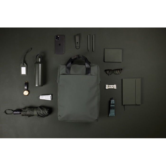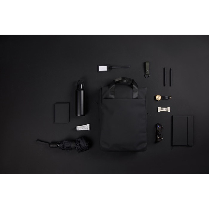 Een makkelijk hanteerbare tas met een strak ontwerp. Draag ‘m als totebag of als rugzak. De tas heeft een brede ritssluiting voor het handig inpakken van je laptop en andere waardevolle spullen. Een band aan de achterzijde maakt het mogelijk de tas aan een trolley te bevestigen voor soepel vervoer. Verder heeft hij een groot voorvak, een binnenvak en een praktische flessenhouder. Gecertificeerd volgens de RCS‑norm (Recycled Claim Standard), waarmee wordt gegarandeerd dat de volledige toeleveringsketen van gerecyclede materialen gecertificeerd is. Het totale gerecyclede gehalte is gebaseerd op het totale productgewicht. Dit product bevat 19% RCS‑gecertificeerd gerecycled polyester.