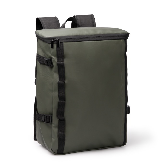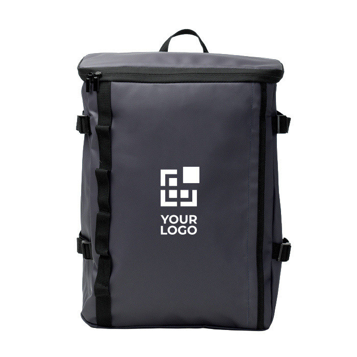 Rugzak van synthetisch leer en 600D polyester, gemaakt voor de dagelijkse praktijk binnen je bedrijf. Met een ruim hoofdvak met ritssluiting en gevoerde bovenzijde, plus een binnenvak met elastische fixatie voor een laptop tot 16''. Er zit een onzichtbaar voorvak in om spullen discreet op te bergen. De zes ankerpunten aan de zijkant en de verstelbanden helpen je het volume aan te passen aan de inhoud. Met trolleyband, gewatteerde rug en gewatteerde handgrepen is hij handig voor verplaatsingen, evenementen en zakelijke relatiegeschenken met logo.