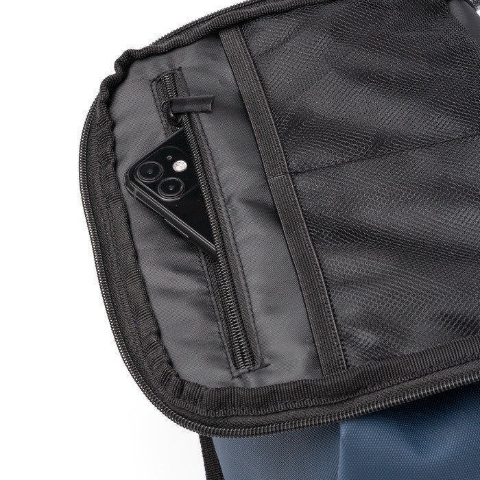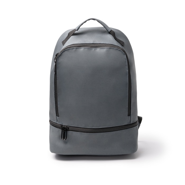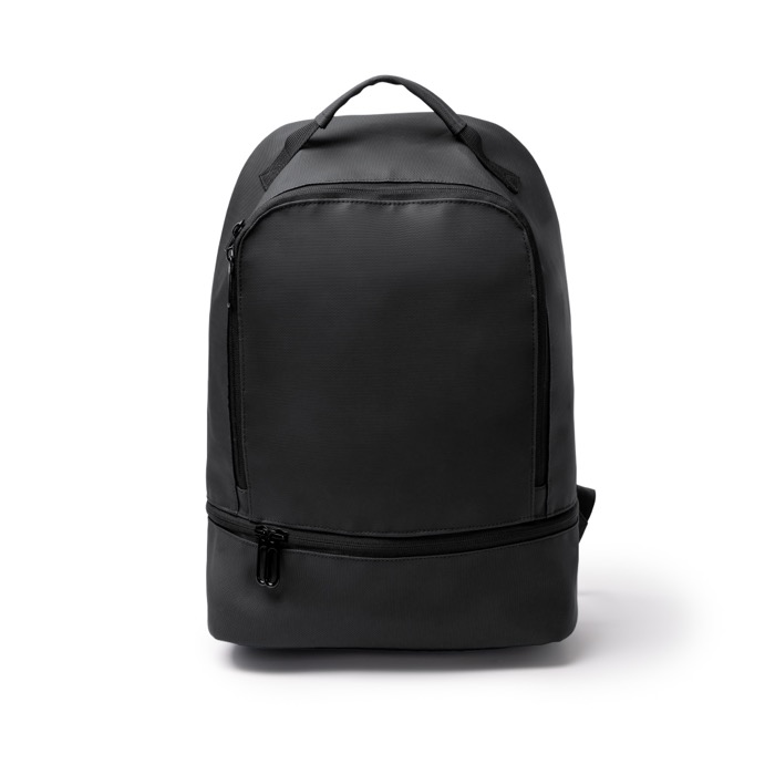 Uniseks rugzak van synthetisch leer met een interne indeling voor elke dag. Bovenin zit een vak met dubbele rits en een handige opzet: gaasvakken, een ritsvak en een elastische houder voor apparaten tot 10". Onderaan zit een tweede, aparte ruimte. Handig om accessoires of werkmateriaal te scheiden. Ook met dubbele rits. Achterop zit een verticaal antidiefstalvak. De rug en schouderbanden zijn gewatteerd, zodat je comfortabel reist. Aan te raden voor welkomstacties, beurzen en teamuitrusting.