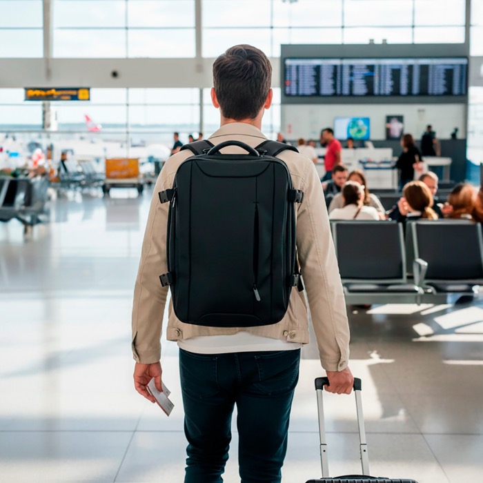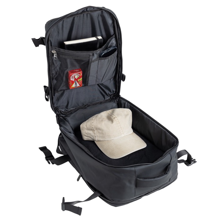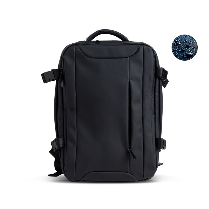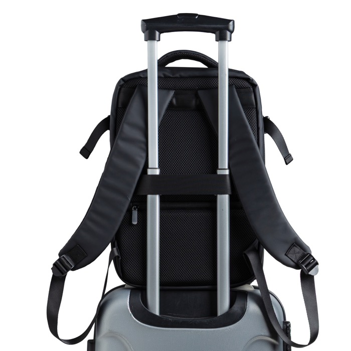 Stevige rugzak van synthetisch leer met uitschuifbaar under-the-seat ontwerp, zodat je extra capaciteit hebt wanneer je het nodig hebt. Met een antidiefstalvak om waardevolle spullen te beschermen en aparte compartimenten die je helpen je dag overzichtelijk te houden. Inclusief een waterdichte ruimte voor kleding of accessoires en een gewatteerd laptopvak voor laptops tot 15,6'', plus waterbestendige ritsen voor extra bescherming. Een praktische keuze voor merkacties tijdens zakelijke reizen, evenementen of dagelijks gebruik op kantoor.