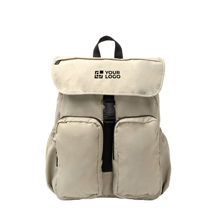 Zachte nylon rugzak voor dagelijks gebruik op het werk en onderweg. Je krijgt een ruim hoofdvak met verstelbare trekkoordsluiting en veiligheidsstopper, plus een bovenflap met gesp voor snelle toegang. Met een klein voorvak en twee middelgrote voorvakken met rits om opladers, sleutels of documenten netjes te ordenen. Binnenin is er ruimte voor een laptop tot 15''. Gewatteerde rug en handgreep voor extra comfort. Handig voor onboarding, beurzen en salesteams.