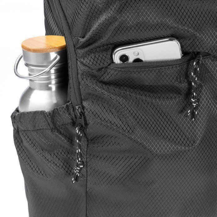 Rugzak van gerecycled kunststof in Ripstop-stijl, met waterafstotende stof voor dagelijks gebruik onderweg. Met een hoofdvak met rits en een binnenvak met elastische pasvorm voor elektronische apparaten tot 9''. Daarnaast twee externe voorvakken met rits om kabels, sleutels of documenten te organiseren. Aan de zijkant zit een elastisch vak voor flessen of bidons. Gewatteerde schouderbanden en rugpand voor comfortabeler dragen. Handig voor HR-acties, evenementen en salesteams.