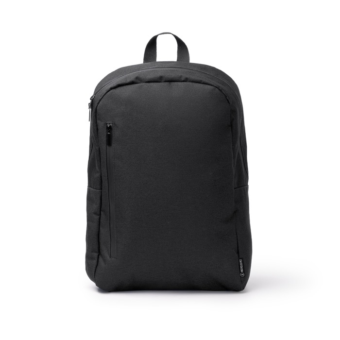 Rugzak van gerecycled plastic met 300D-stof en een kunststof coating die helpt om vloeistoffen af te stoten. Hij heeft waterdichte ritsen en een hoofdvak met dubbele sluiting om je dag goed te organiseren. Inclusief binnenvak voor een laptop tot 15" en twee extra vakken voor accessoires, plus een ruim buitenvak met luchtdichte rits. Verder heeft hij zijvakken voor flessen, een gewatteerde rug en schouderbanden, reflecterende tape en een trolleyband. Handig voor merkacties op beurzen, onboarding of zakelijke reizen.