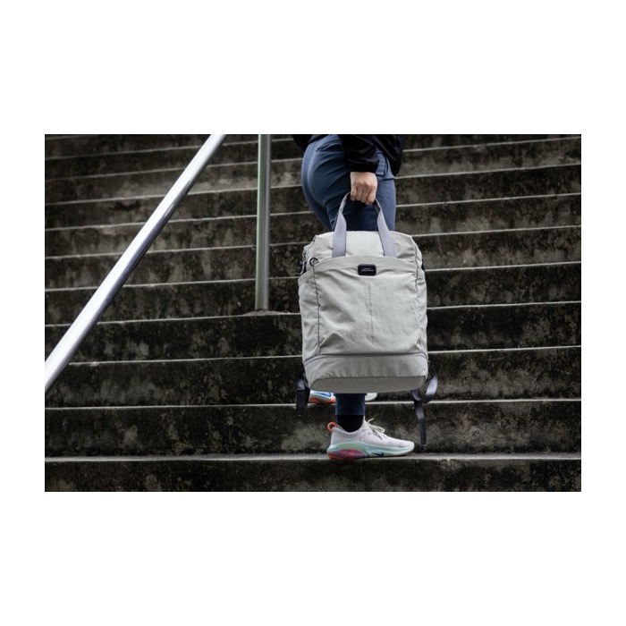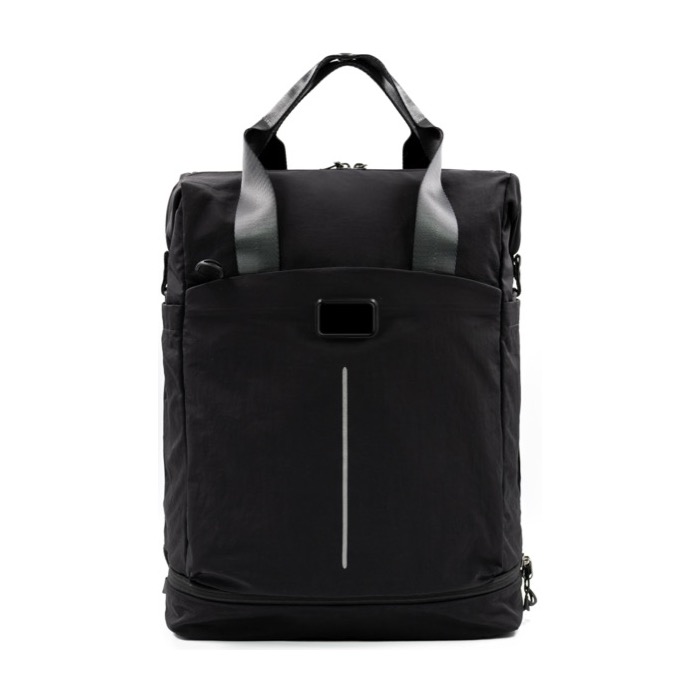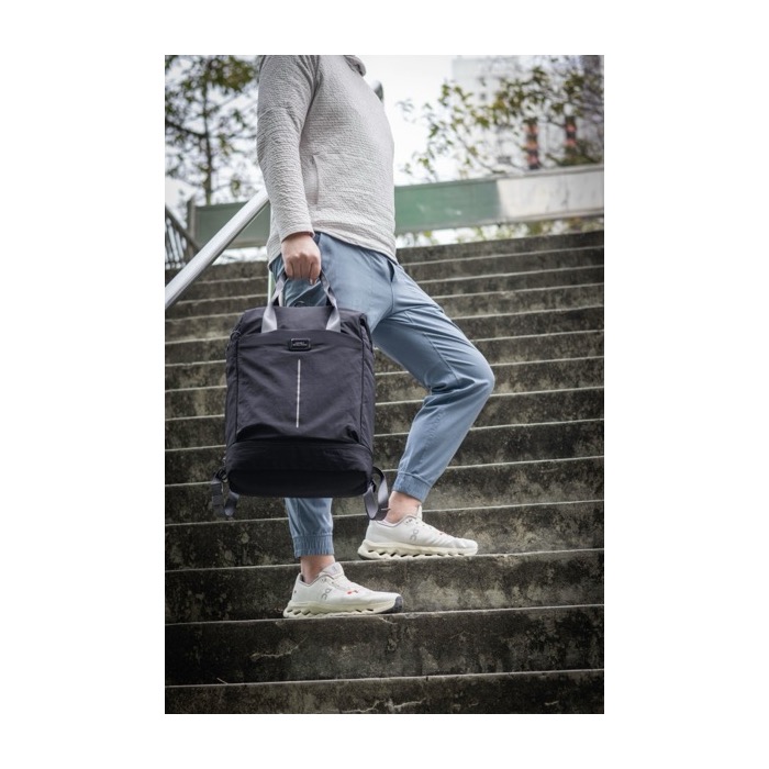 Ultralichte en sterke rugzak van gerecycled nylon, ontworpen voor dagelijks gebruik en korte verplaatsingen. Biedt een inhoud van 23 liter en een slim ingedeelde opzet: gewatteerde laptophoes voor 16 inch, schoenenvak, twee zijvakken en vier binnenvakken. De zelfgewatteerde rug verhoogt het draagcomfort en de trolleyband maakt reizen makkelijker. Met reflecterende details en een waterafstotende afwerking voor stadsritten. Een praktische keuze voor merkacties op events, HR of teamuitrusting.