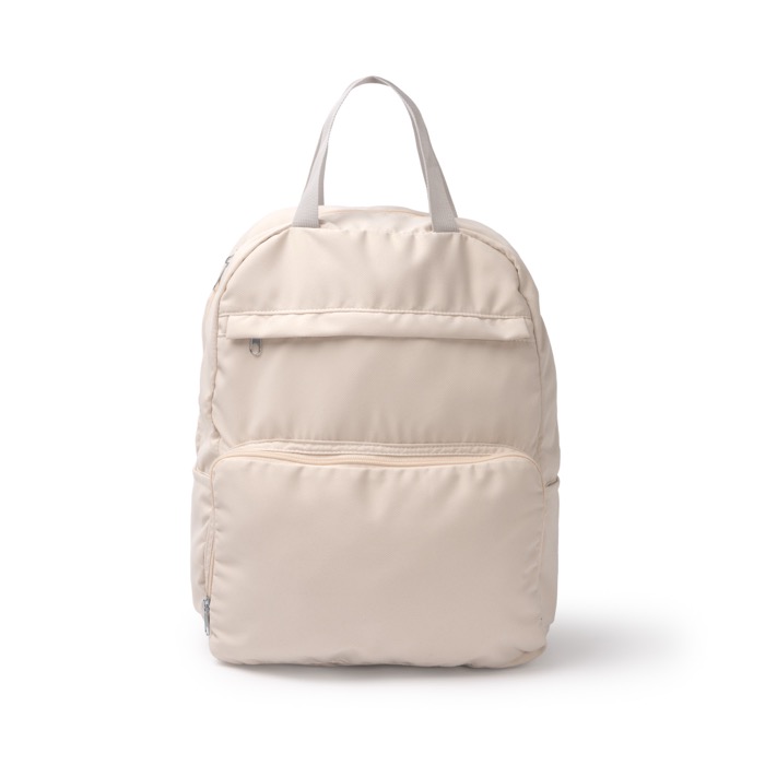 Rugzak van polyester en katoen met een opvouwbaar ontwerp, bedoeld om ruimte te besparen bij het opbergen. Het voorvak met dubbele rits helpt de rugzak soepel in vorm te houden en compact te maken wanneer je hem niet gebruikt. Hij heeft een hoofdvak en twee voorvakken om accessoires te organiseren, allemaal met ritssluiting. Met dubbele handgreep bovenaan voor snel meenemen en verstelbare, gewatteerde schouderbanden om hem op je rug te dragen. In de zijvakken kun je flessen meenemen. Handig voor HR-acties, beurzen of een zakelijke welcome pack met logo.