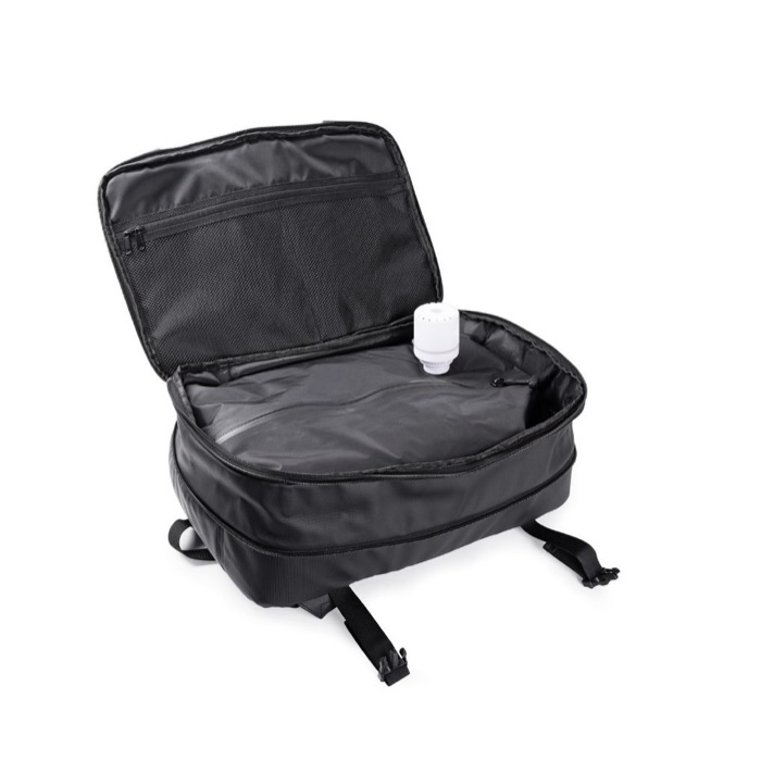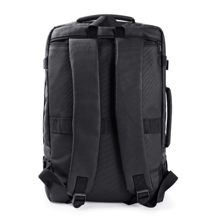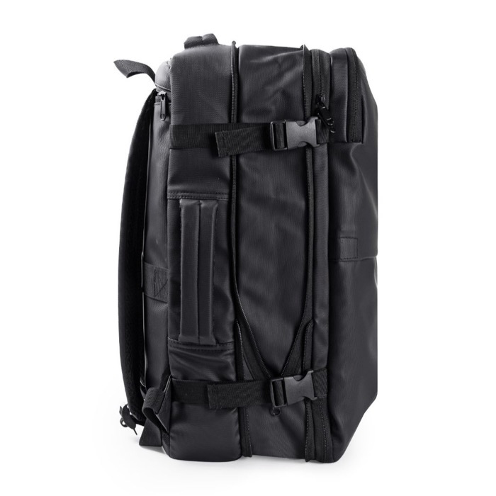 PU-rugzak van 30 L met expand-functie, meerdere compartimenten en ruime opening. Trolleycompatibel.