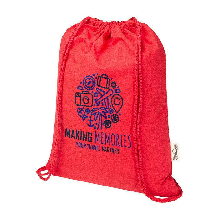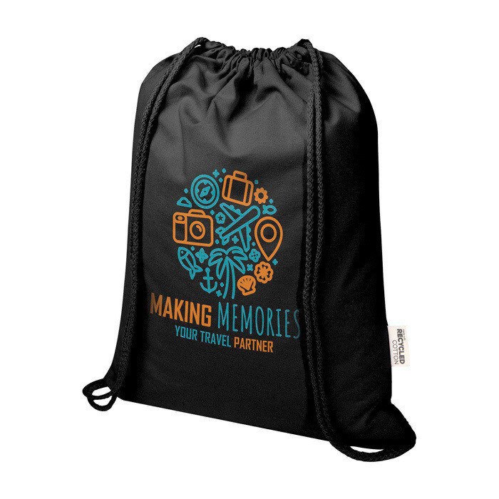 De Oregon Blend trekkoortas, gemaakt van 60% GRS-gecertificeerd gerecycled katoen en 40% GRS RPET, is eenvoudig uit te delen als cadeau om je merk of marketingcampagne te promoten. Deze lichte tas is budgetvriendelijk, makkelijk te dragen op de rug of schouder en biedt voldoende ruimte voor het toevoegen van een logo of andere boodschappen. Het trekkoord maakt het gemakkelijk om de tas te openen en te sluiten, en het 140 g/m² katoenmateriaal is sterk en duurzaam. Groot hoofdvak met katoenen trekkoordsluiting. De beschikbare drukmethodes voor deze tas zijn ook GRS-gecertificeerd, wat zorgt voor een transparante en gecertificeerde volledige supply chain. Gemaakt in India. Belastbaar tot 5 kg. Inhoud: 5 liter.