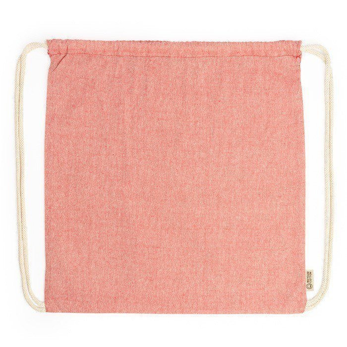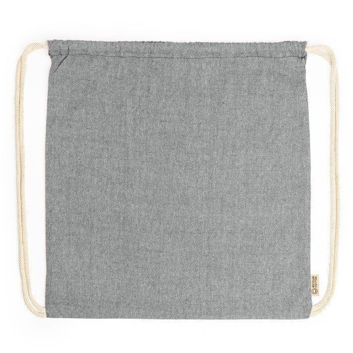 Tas met trekkoord van 120 g/m² gerecycled katoen in gemêleerde afwerking en koorden in natuurlijke kleur.