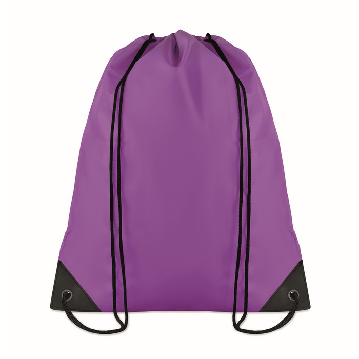 Deze populaire trekkoordrugzakken zijn een schot in de roos: ze zijn comfortabel, praktisch en licht. Ideaal voor een dagje in de stad of zelfs op reis! Dit budgetvriendelijke model is gemaakt van 190T polyester en je kunt de rugzak bedrukken met je bedrijfslogo. Ze zijn voorzien van verstevigde hoeken van zwart synthetisch leer aan de voorkant, een stoffen achterkant en een metalen ring waar de koorden doorheen lopen. Het slimme ontwerp voorkomt dat de stof op deze kwetsbare plekken vervormt of scheurt, waardoor de rugzak extra lang meegaat.