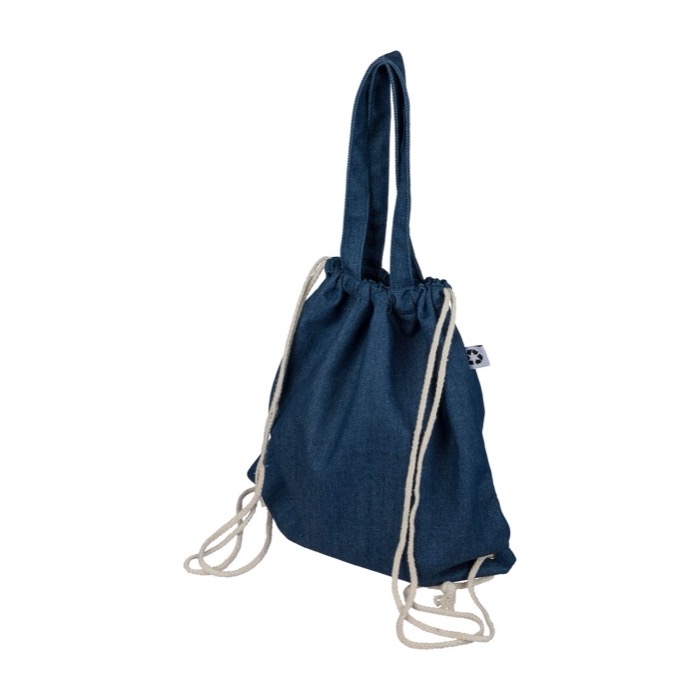 Originele rugzaktas van gerecycled denim met sluitkoorden en lange handgrepen. Erg handig om je merk zichtbaar te maken en je spullen comfortabel mee te nemen.