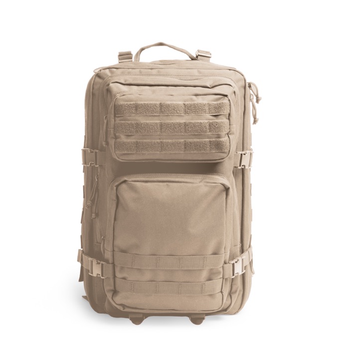 Rugzak met 45L inhoud, personaliseerbaar en voorzien van een volledig te openen hoofdvak en een verborgen anti-diefstalvak aan de achterkant.