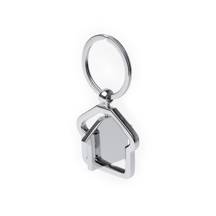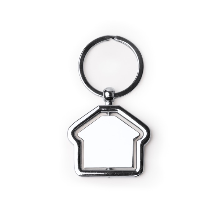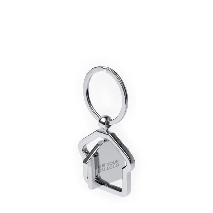 Draaiende metalen sleutelhanger in huisvorm met markeerzone