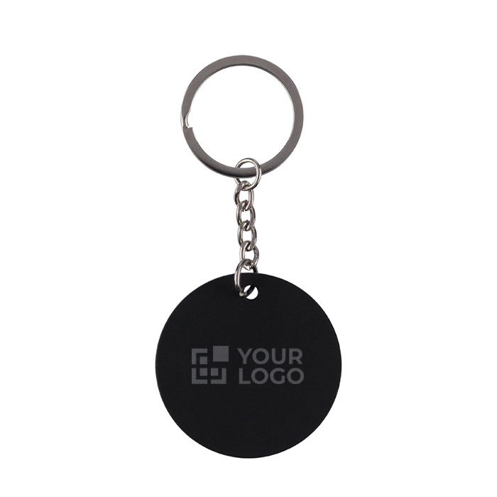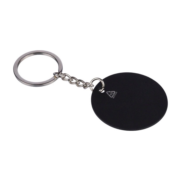 Ronde sleutelhanger van gerecycled roestvrij staal en rubber