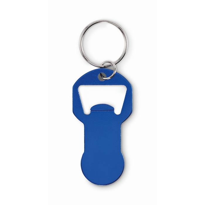 - Sleutelhanger-flesopener van gerecycled aluminium met winkelwagenmunt
