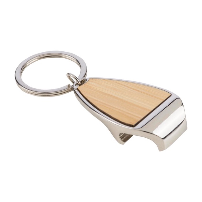 - Sleutelhanger met flesopener en bamboedetail aan de voorkant