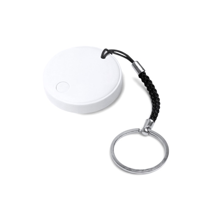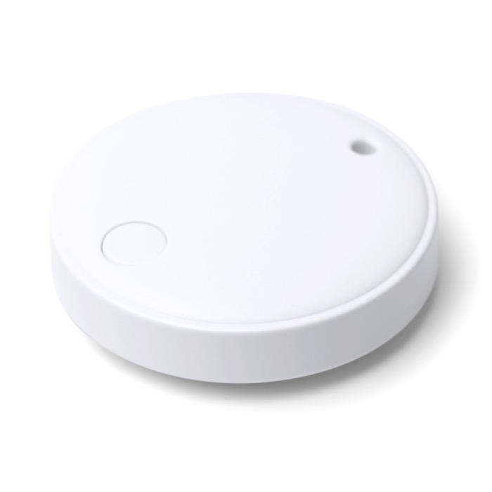 Anti-verlies tracker van kunststof met bescherming tegen water en geïntegreerde sleutelhanger om mee te nemen aan je sleutels, rugzak of aktetas. Je koppelt hem via een app en een Bluetooth-verbinding met iOS- en Android-telefoons, zodat je spullen op afstand makkelijker terugvindt. Werkt op een batterij en geeft een geluidssignaal om hem snel te vinden als hij niet in het zicht ligt. Inclusief metalen ring en draagkoord voor comfortabel gebruik elke dag. Geschikt voor merkacties op beurzen en voor salesteams.