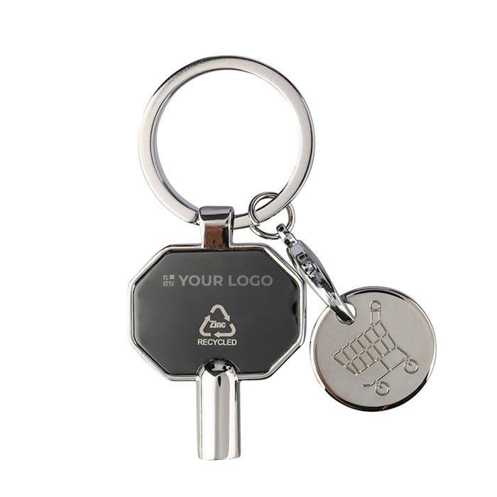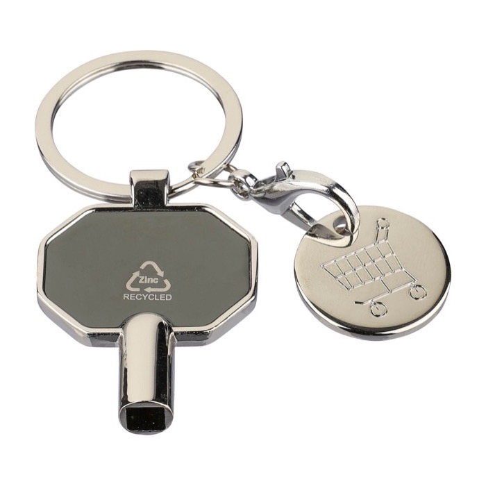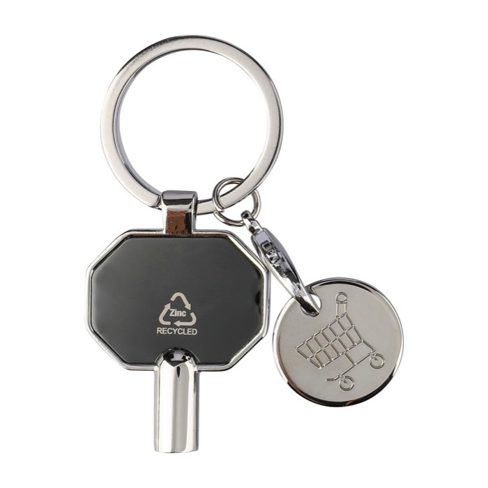 Gerecyclede aluminium sleutelhanger met winkelwagenmuntje