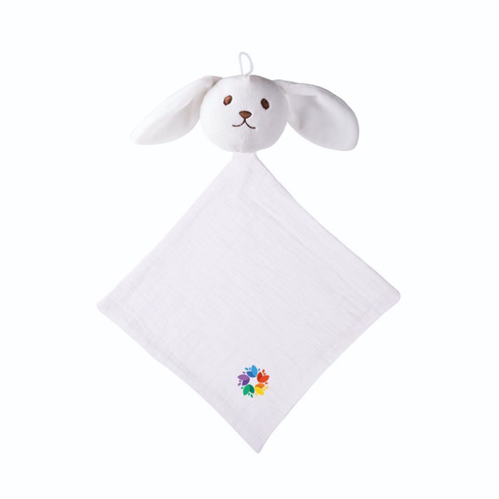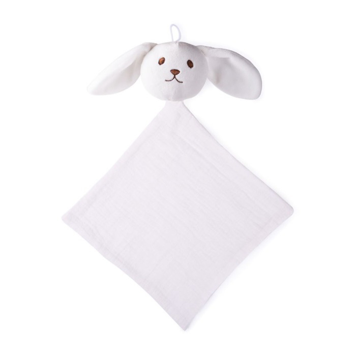 Knuffeltje voor baby van zacht katoen met konijnenhoofd