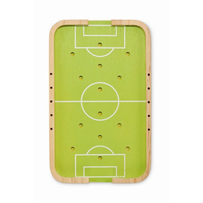 Houten voetbalspel met complete onderdelen voor snelle potjes op tafel. Inclusief spelers, bal, lanceerder en doelpalen, ontworpen om eenvoudig te monteren en te gebruiken op kantoren, in pauzeruimtes of op evenementen. Het compacte formaat maakt transport en opslag gemakkelijk, en de onderdelen maken het mogelijk om acties na te spelen zonder installatie of gereedschap. Praktische optie voor interne campagnes, welkomstpakketten of marketingacties op beurzen en bijeenkomsten.