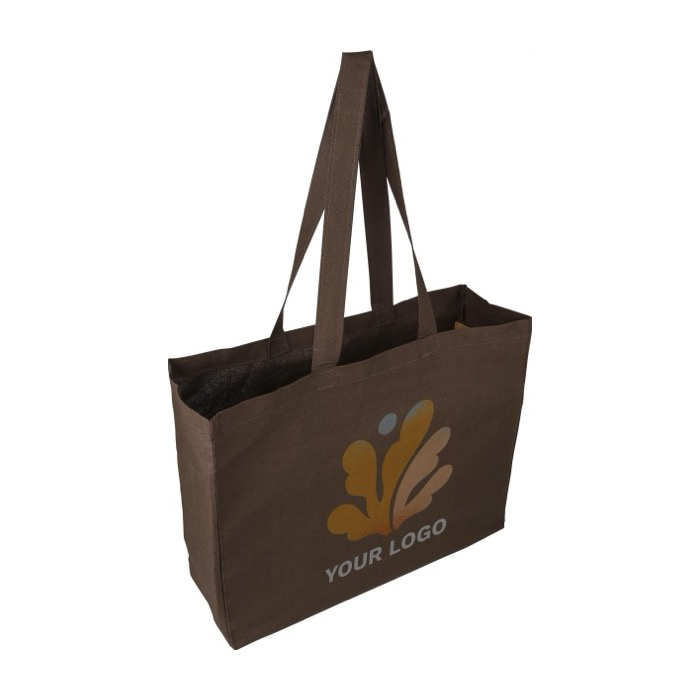 Katoenen tas met een zijversteviging van 13 cm. Zo krijg je meer inhoud zonder in te leveren op comfort. Met lange hengsels van 67 cm. Ideaal om over de schouder te dragen op beurzen, op kantoor of tijdens dagelijkse verplaatsingen. De stof van 180 g/m² voelt stevig aan en oogt verzorgd voor merkacties. Inclusief label met Oeko-Tex®-certificaat (textielveiligheidsnorm) om vertrouwen in het materiaal te versterken. Een praktische keuze voor corporate merchandising en events met logo.