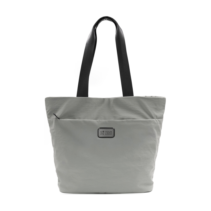 Ultralichte hand-/schoudertas van gerecycled nylon, ontworpen voor dagelijks gebruik met duidelijke indeling en snelle toegang. De tas heeft vier compartimenten, waaronder een gewatteerd laptopvak en een aparte ruimte voor schoenen, plus twee zijvakken voor flessen of accessoires. De achterkant is gewatteerd en heeft een trolleyband, handig bij reizen en onderweg. Met magneetsluiting, reflecterende details en stevige middellange handgrepen, zonder individuele verpakking. Een praktische optie voor merkactivaties bij events, voor salesteams of als onderdeel van een zakelijke welcome kit.