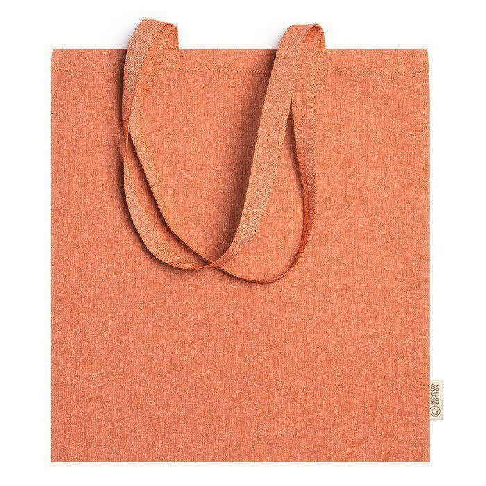 Tas van 100% gerecycled katoen van 120 g/m² in gemêleerde afwerking met handvatten van 70 cm lang.