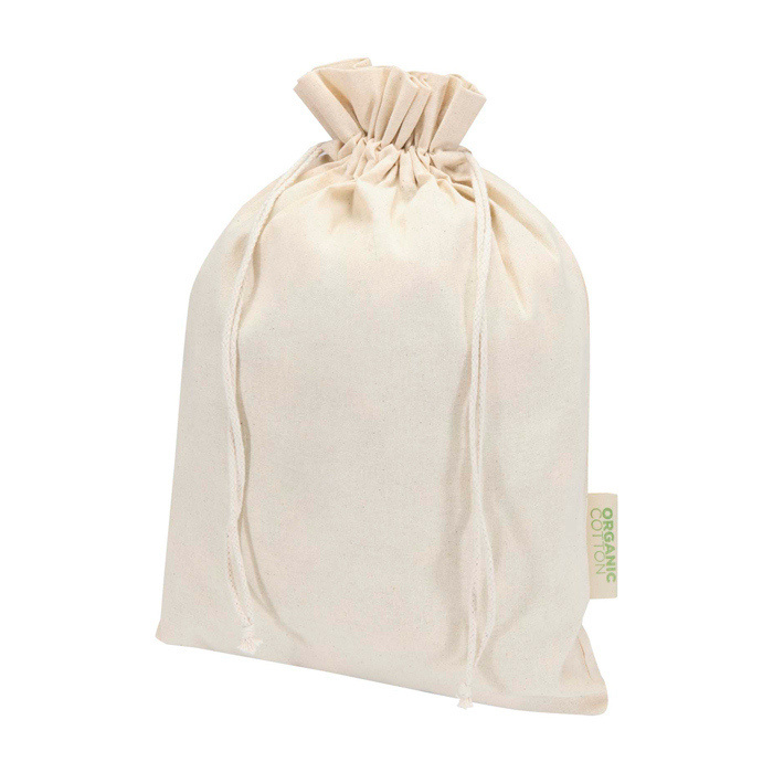 Katoenen geschenkzak met een afwerking van 140 g/m². Ideaal om kleine attenties te geven of spullen in het dagelijks gebruik te beschermen. Met katoenen trekkoordsluiting. Je opent en sluit hem eenvoudig. Zo blijft de inhoud netjes bij elkaar. Het formaat van 42 x 30 cm biedt genoeg ruimte voor lichte kleding, documenten of kleine accessoires. Je kunt de zak personaliseren om je merk zichtbaarder te maken bij welkomstacties, interne events of leveringen aan klanten.