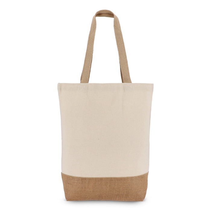 Canvas tas van katoen met jute bodem die duurzaamheid, stijl en een eco-touch biedt. Trek klanten aan met een ontwerp dat praktisch en elegant combineert.