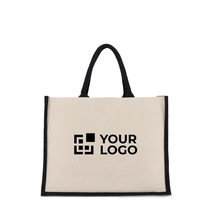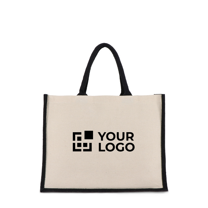 Katoenen tas met gekleurde jute zijkanten en bodem 320 g/m²