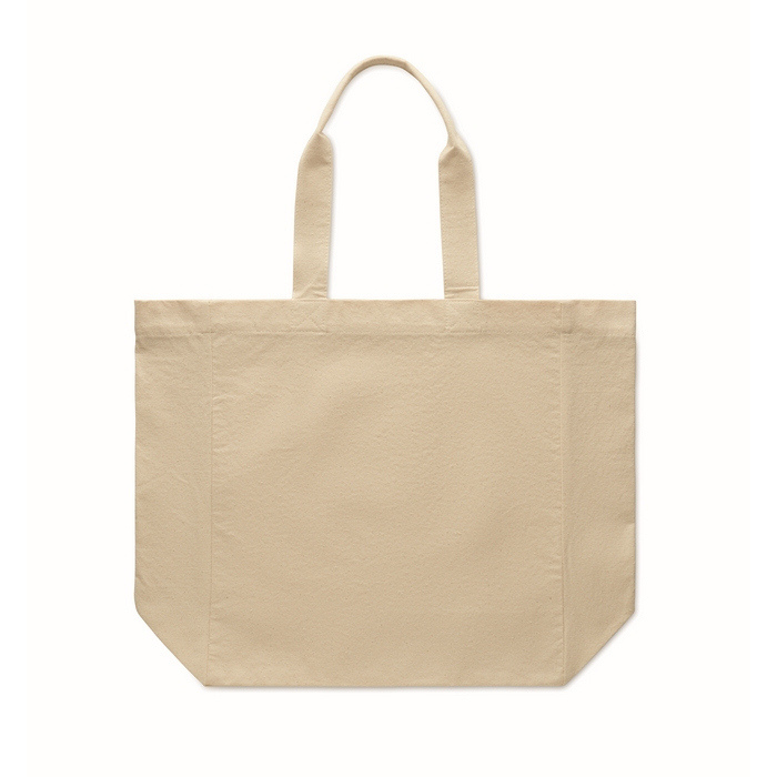 Katoenen tote bag van 220 g/m² met korte hengsels en zijvouw, bedoeld voor dagelijks gebruik bij boodschappen en evenementen. De dikke stof geeft een stevige uitstraling en helpt de vorm te behouden wanneer de tas vol is. De zijvouw voegt extra inhoud toe, handig om catalogi, documentatie of kleine producten te vervoeren zonder dat de tas vervormt. De korte hengsels maken het gemakkelijk om de tas in de hand of over de onderarm te dragen. Praktische optie voor beurzen, winkels en corporate merchandising-acties.