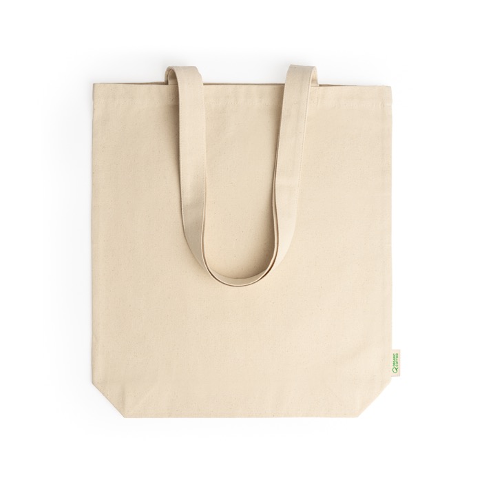 Geef duurzaamheid en stijl cadeau met deze biokatoenen tas met lange hengsels van 70 cm en bodemvouw. Ontworpen om je merk te laten opvallen op elk event.