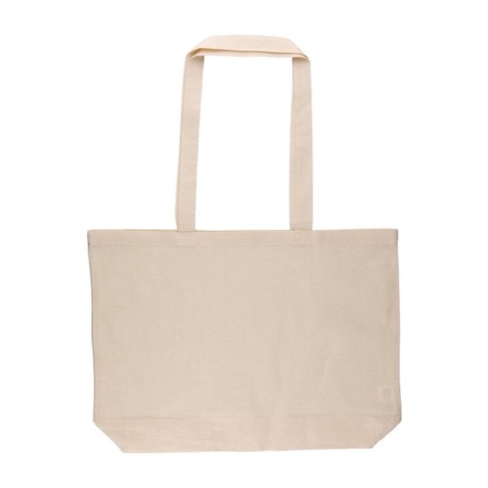 Katoenen tas in naturel van 140 g/m², bedoeld voor dagelijks en herhaald gebruik. Met zijvouw voor extra inhoud en meer stabiliteit bij het dragen van catalogi, documenten of kleine items. De lange hengsels draag je comfortabel over je schouder, ook tijdens het lopen op beurzen of op kantoor. Met OEKO-TEX-label (Standard 100), handig om inkoop- en compliance-eisen te ondersteunen. Praktische optie voor brandingacties, events en het uitdelen van bedrijfsmateriaal.