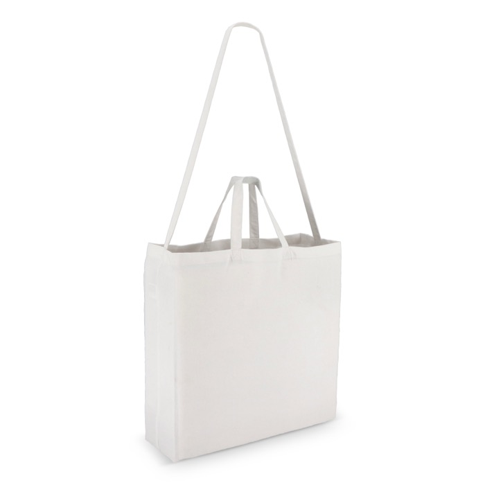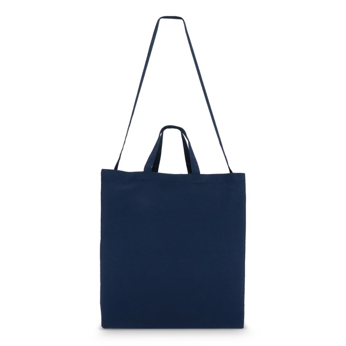 Veelzijdige katoenen tas van 220 g/m², verkrijgbaar in een breed scala aan kleuren. Met één lang hengsel om over de schouder of crossbody te dragen en twee korte hengsels voor in de hand. Perfect voor dagelijks gebruik of events. Oeko-Tex® gecertificeerd voor veilige en geteste materialen.