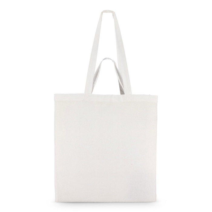Veelzijdige katoenen tas van 140 g/m² in diverse kleuren, met lange en korte hengsels voor flexibel gebruik. Oeko-Tex® gecertificeerd. Een praktische keuze voor winkels, events of dagelijks gebruik.