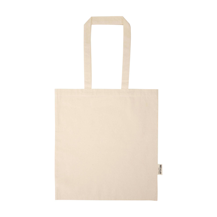 Tote bag van gerecycled katoen en gerecycled plastic met GRS-certificering (Global Recycled Standard), gemaakt voor dagelijks gebruik op het werk en bij events. Heeft een ruim hoofdvak. Zo blijft je logo goed zichtbaar en is het eenvoudig aan te brengen. De stof van 180 g/m² helpt de tas zijn vorm te behouden. Draagt tot 5 kg, geschikt voor catalogi, documenten of kantoorartikelen. De schouderhengsels van 30 cm zorgen voor meer comfort onderweg. Handig als drager van je merk op beurzen en bij HR-acties.
