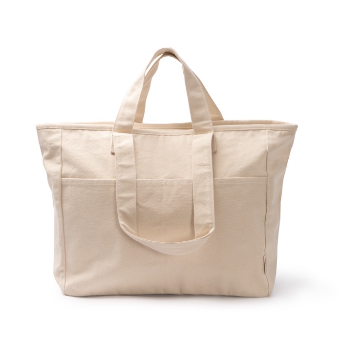 Tas van gerecycled katoen van 420 g/m², met een ontwerp voor dagelijks gebruik in zakelijke omgevingen. Hij heeft dubbele, verstevigde handgrepen in twee lengtes, zodat je hem over de schouder of in de hand draagt. De inzet aan de bodem en zijkanten geeft meer inhoud en een flexibelere vorm als hij vol zit. Er zijn twee voorvakken om accessoires te organiseren en het hoofdvak sluit met een rits, handig onderweg. Een praktische keuze voor evenementen, merkacties of intern gebruik op kantoor.