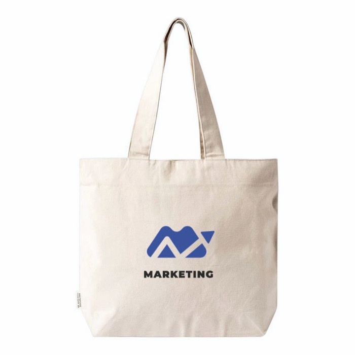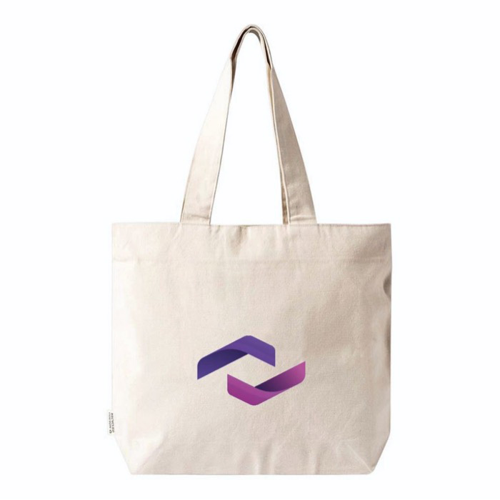 Tas van gerecycled katoen van 280 g/m² met ritssluiting om de inhoud beter te beschermen. Met lange hengsels, zodat je hem comfortabel over je schouder draagt tijdens je dagelijkse verplaatsingen. Draagkracht tot 14 kg helpt je om documenten, catalogi of kantoorbenodigdheden zonder gedoe mee te nemen. Ruim en praktisch oppervlak om te bedrukken met je logo en campagneteksten. Handig voor beurzen, interne trainingen of welkomstpakketten in de winkel.