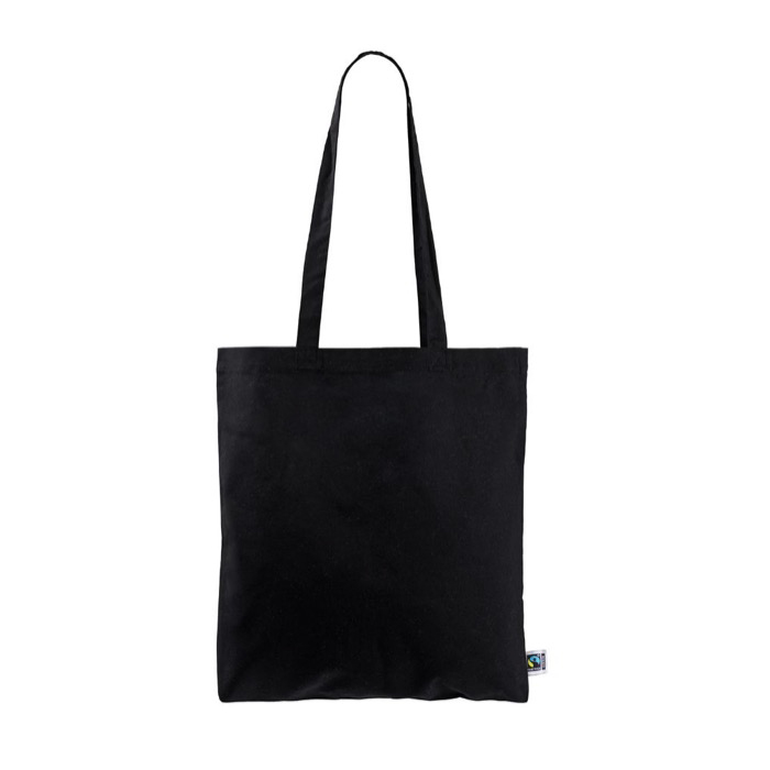 Tote bag met lange handvatten van 140 g/m² fairtrade katoen. Draaggewicht tot 6 kg.