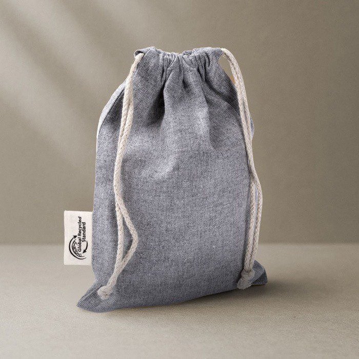 Katoenen en gerecycled polyester tasje met trekkoordsluiting 120 g/m2