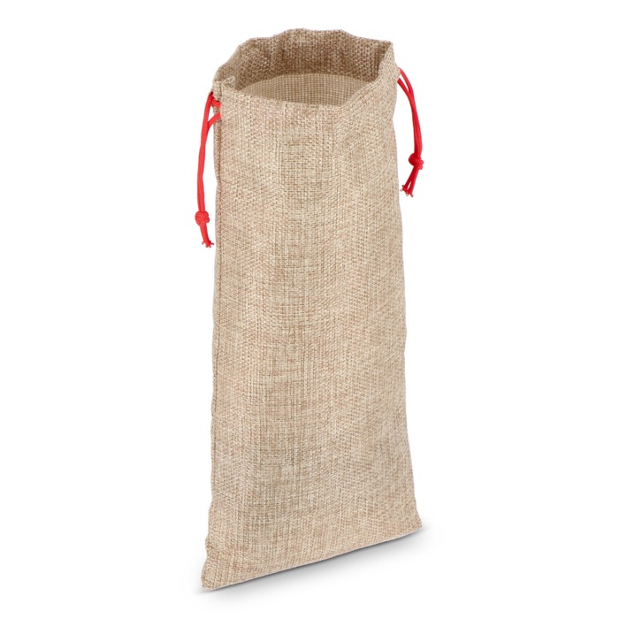 Geef je geschenken extra uitstraling met deze jute-stijl flessentas. Een rustiek accent dat meteen de aandacht van je klanten trekt.