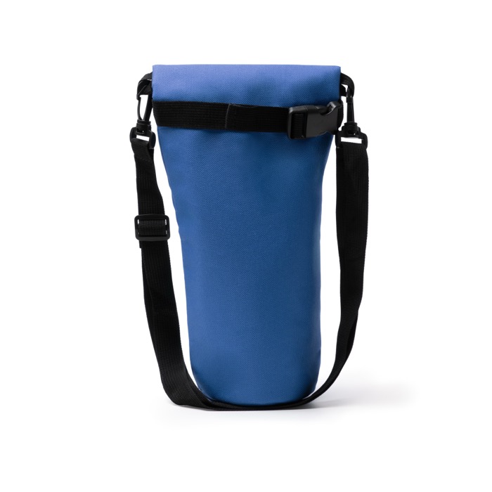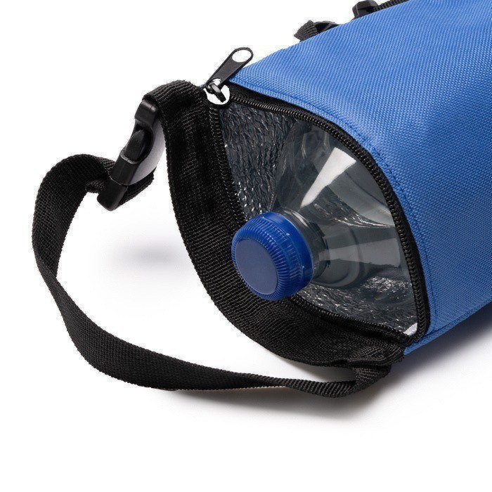 Flessenkoeltas met buitenkant van gerecycled plastic en thermische isolatie aan de binnenkant, bedoeld om koude dranken netjes en comfortabel mee te nemen. Met een rits aan de bovenkant voor snelle toegang en een veilige sluiting onderweg. De verstelbare gesp helpt je de bevestiging aan te passen aan het gebruik, en de schouderband met karabijnhaken maakt dragen over de schouder of hangend eenvoudig. Praktische optie voor merkacties op beurzen, events en bedrijfsmatige merchandising.
