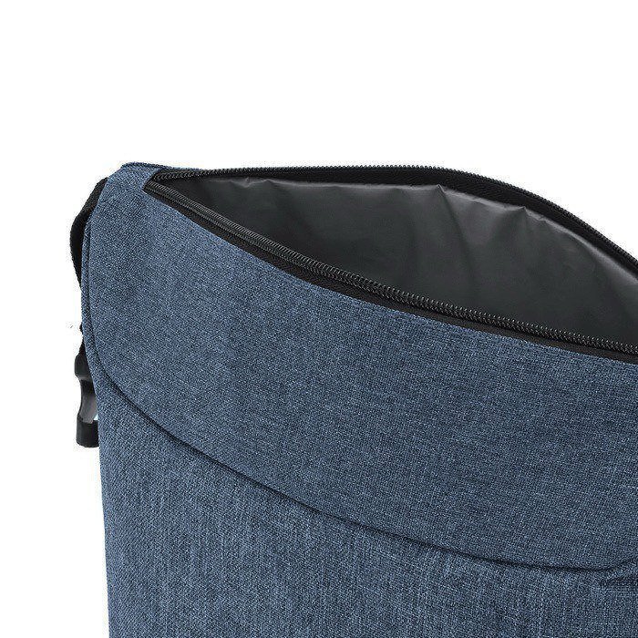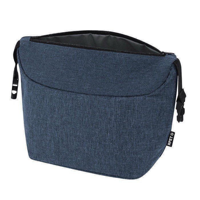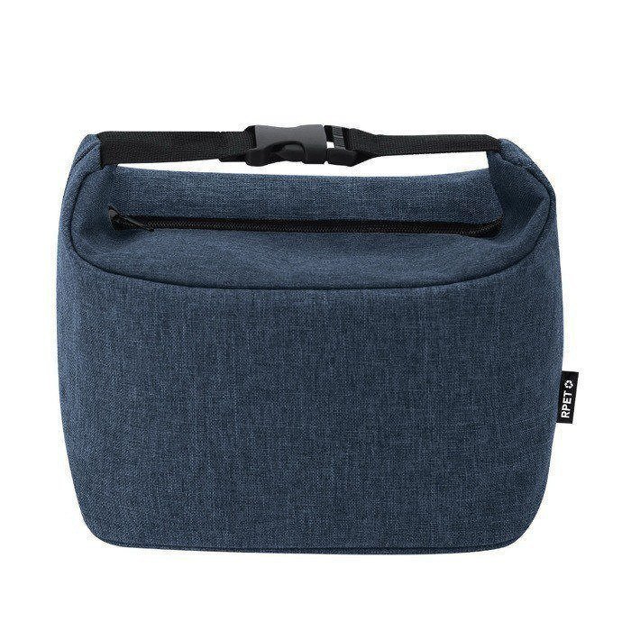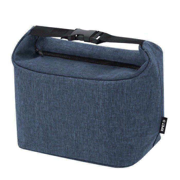 Koeltas van 600D gerecycled plastic (RPET), bedoeld voor dagelijks gebruik op kantoor of onderweg. Origineel ontwerp met een gesp aan beide uiteinden. Zo draag je hem makkelijker. Je past de sluiting ook aan op de lading. Met een thermisch hoofdvak aan de binnenkant om drankjes en eten langer op temperatuur te houden. Inclusief identificatielabel van gerecycled plastic (RPET), handig om de boodschap van het artikel te versterken bij interne acties. Een praktische optie voor events, trainingen of als bedrijfsgeschenk met logo.
