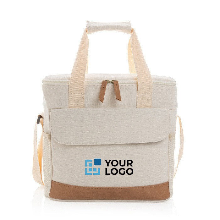 Stop je favoriete eten of drinken in deze chique koeltas! Deze prachtige 16oz. grote koeltas van gerecycled canvas kan tot 20 blikjes bevatten. Met 2 mesh zijvakken en 1 voorvak voor extra opbergruimte. Met mooie PU details. De AWARE™ tracer die het echte gebruik van gerecycled canvas valideert. Elke koeltas bespaart 1667,4 liter water. 2% van de opbrengst van elk verkocht Impact-product wordt gedoneerd aan Water.org. Samenstelling 60% gerecycled katoen en 40% gerecycled polyester. Voering in PEVA.