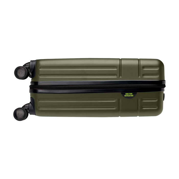De 20” Rover cabinetrolley is gemaakt van slagvast gerecycled plastic en RPET-voering en staat zowel voor duurzaamheid als voor kwaliteit. Hij beschikt over een aluminium frame met dubbele buizen, een 360 graden spinner met vier wielen, een geïntegreerd TSA-combinatieslot, een gemakkelijke handgreep voor comfort en opbergvakken aan de binnenkant. Kan bij de meeste reguliere luchtvaartmaatschappijen als handbagage worden meegenomen. Deze trolley is GRS-gecertificeerd, inclusief de bedrukking, waardoor het een duurzamere keuze is.
