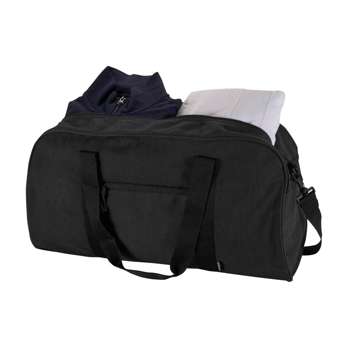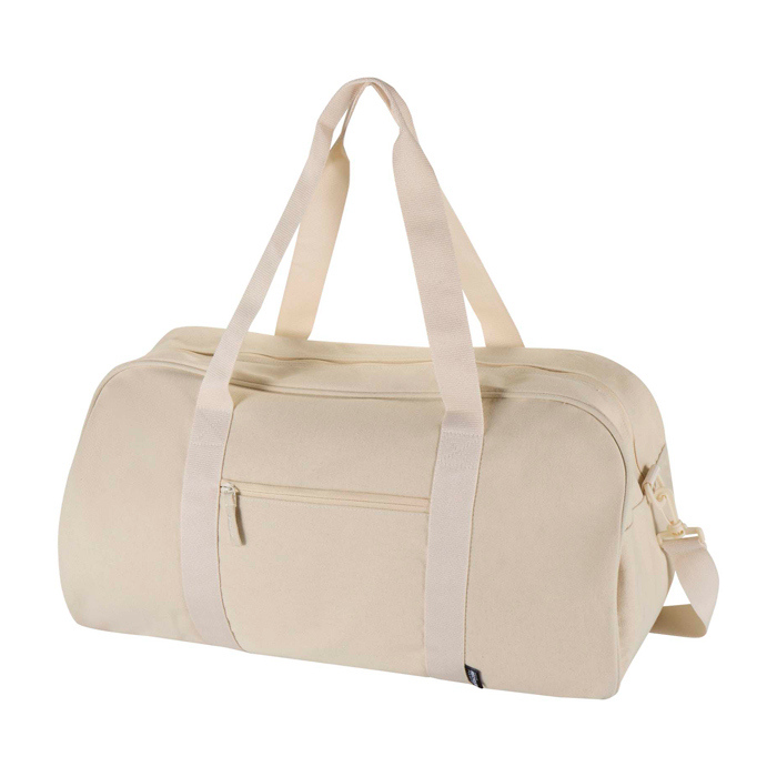 Waterafstotende reistas van gerecycled canvas met GRS-certificaat (Global Recycled Standard), gemaakt voor intensief dagelijks gebruik. Met een ruim hoofdvak voor kleding of werkspullen en een voorvak met rits voor spullen die je snel nodig hebt. De zachte handgrepen dragen prettig in de hand. De verstelbare en afneembare schouderriemen maken het makkelijk om te wisselen tussen over de schouder of als crossbody. Aanrader voor het uitrusten van teams, merkacties of bedrijfsevents.